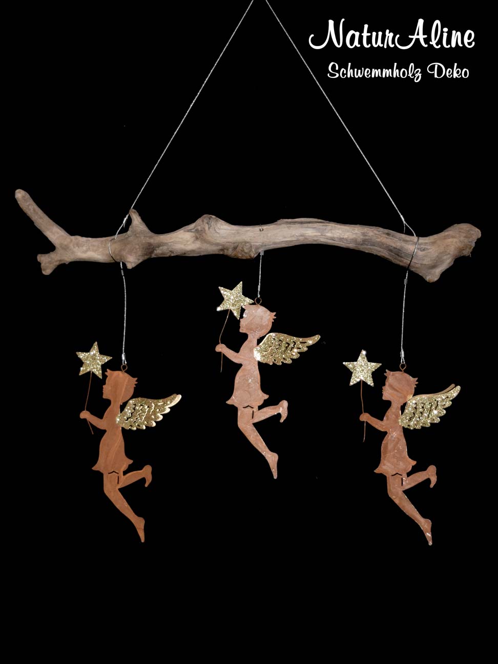 Die Schwemmholz Girlande Engel 893, besteht aus drei herzigen Engeln aus Metall im Rost Look und weiteren Deko Elementen. Eine luftig leichte Deko für die Weihnachtszeit oder andere herzerwärmende Momente.