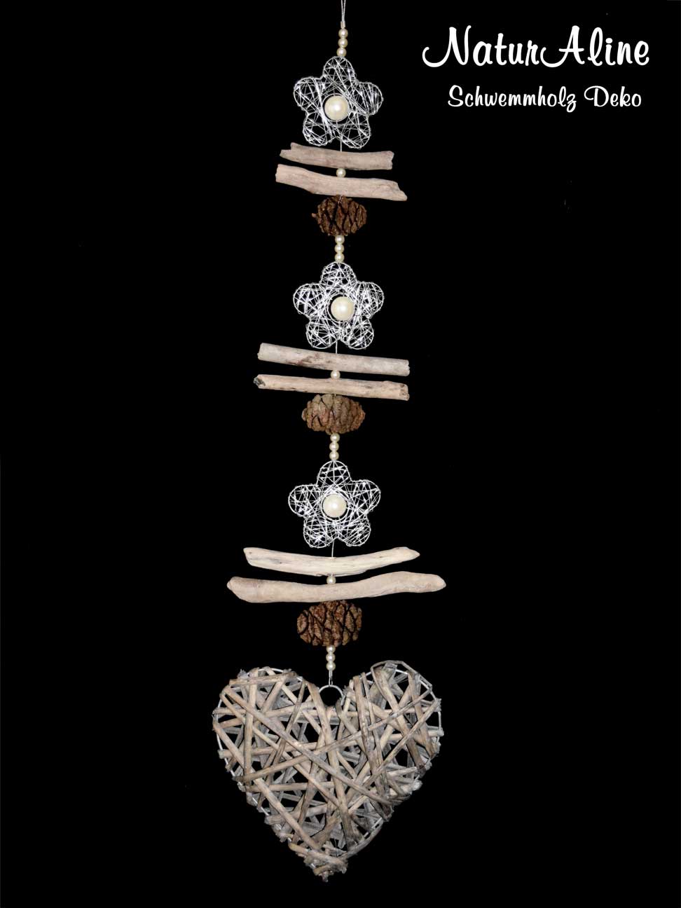 Diese sehr beliebte Schwemmholz Girlande Rattanherz 931 besteht hauptsächlich aus einem grau/braunen Rattanherz und drei silbernen Drahtblumen. Zusätzlich wurden noch drei Tannenzäpfen von den seltenen Mammutbäumen eingearbeitet. Ein toller Blickfang in jedem Wohnzimmer. Auch als Fensterdeko bei eher größeren Fenstern ist diese Treibholz Girlande doch sehr dekorativ.
